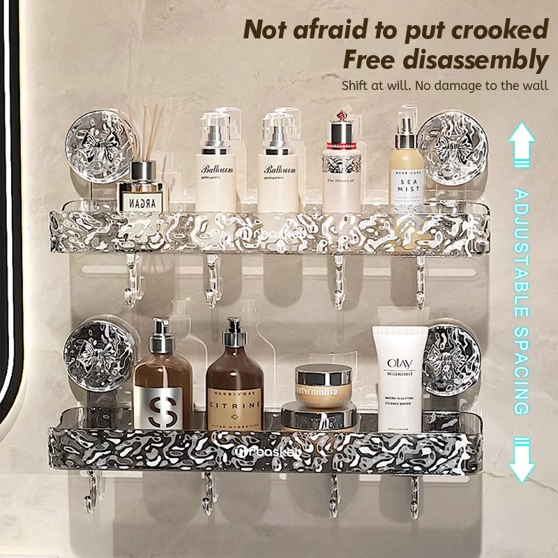 מדף אחסון דקורטיבי לחדר האמבטיה, מותקן על הקיר, ללא קידוח, ביתי, עם יכולת ספיגה חזקה, מדף אחסון לציוד האמבטיה
