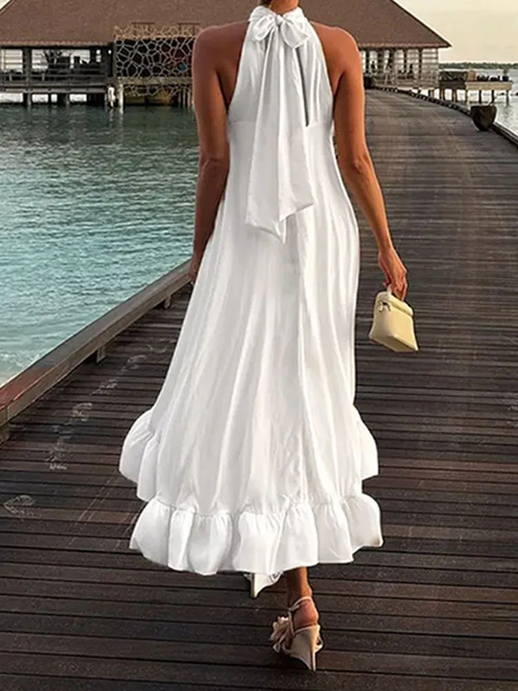 שמלת חופש, ארוכה בסגנון קז’ואל לנשים, ללא שרוולים, צבע אחיד